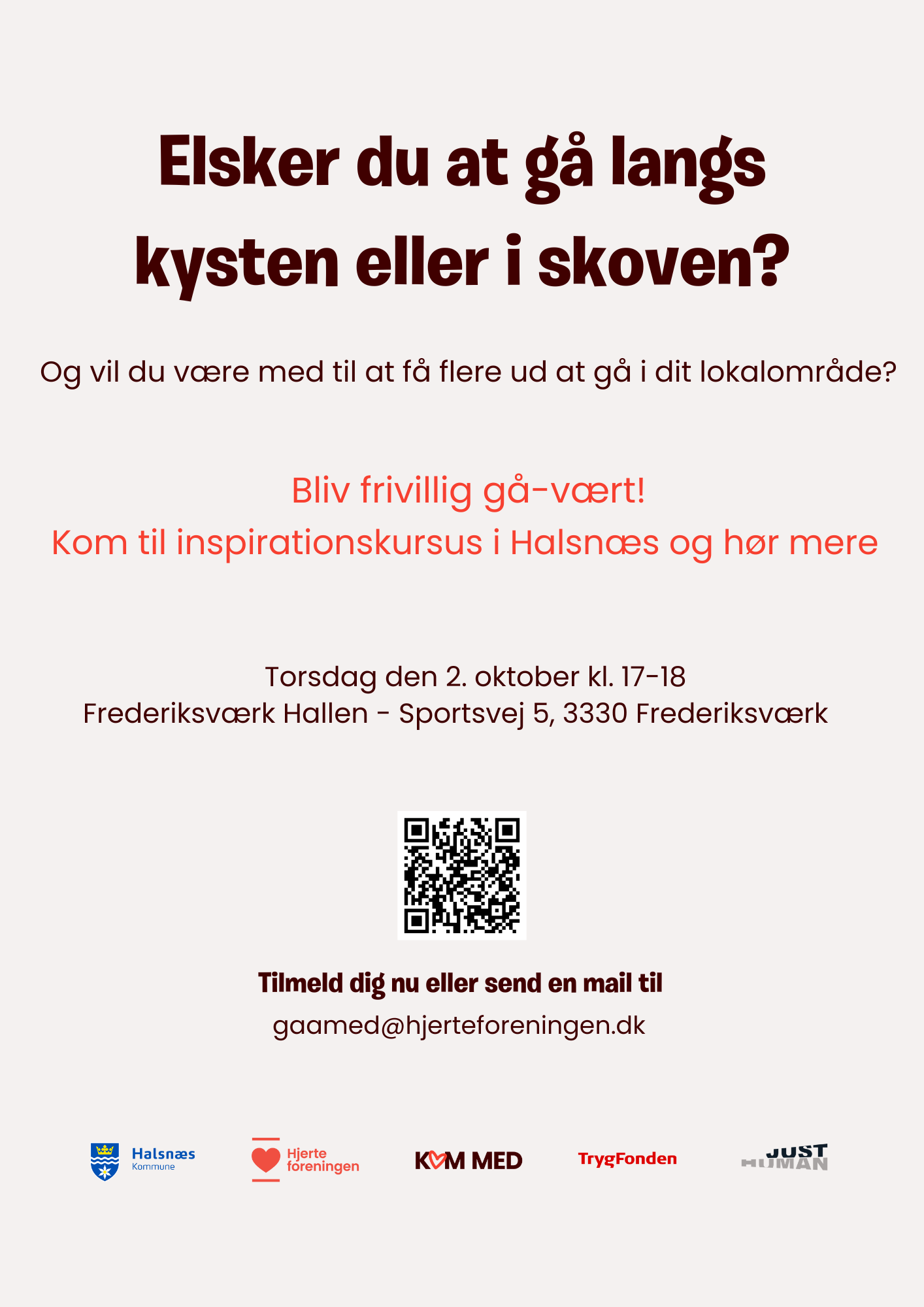Inspirationskurset afholdes i samarbejde med Halsnæs Kommune, Hjerteforeningen, Kom Med, TrygFonden og JustHuman